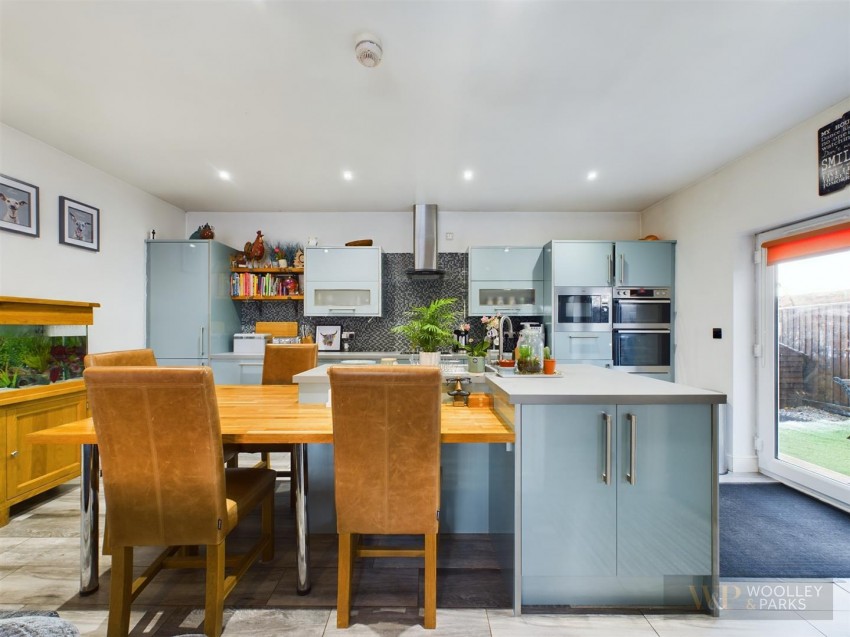 Incorporating the Day Room in a wonderfully social open plan arrangement, this impressive space really does form the hub of the home. The Kitchen is comprehensively fitted with a stylish range of base, wall and drawer units, plus an 'L' shaped central island, in a high-gloss laminate finish with complimenting quartz-effect worktops and solid wood-block breakfast bar, inset stainless steel sink unit and attractive mosaic splash back tiling. A range of integrated appliances include an electric double oven/grill, microwave, dishwasher and an induction hob with extractor cowl above. With double glazed doors opening to the side and tiled flooring extending throughout.