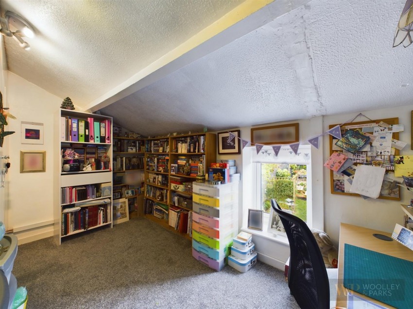 Third spacious double bedroom currently used as a home office again benefiting from built in shelved cupboard housing electric boiler, double glazed window to rear elevation, central heating radiator and fitted carpets.