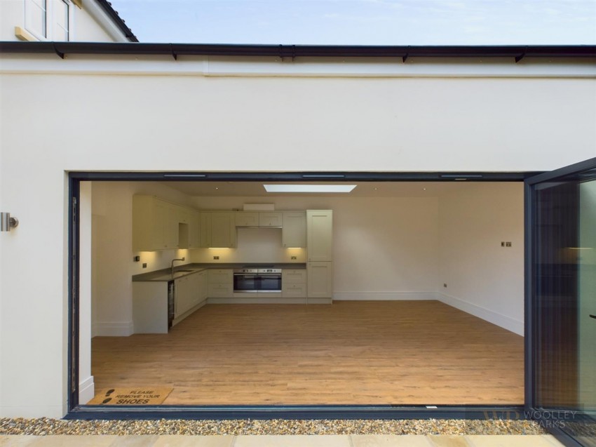The garden extends predominantly to the side of the house, with areas of lawn, planting borders and established boundary hedging. The Indian sandstone patio stands alongside the bi-folding doors from the Kitchen/Day Room. A gravelled pathway extends around the rear and side of the house, offering space for additional shed storage if required.
