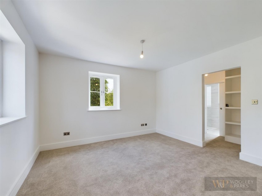 A generous double room enjoys a dual aspect via double glazed windows to the rear and side elevations, with TV/media points and fitted carpet. The walk-through Dressing Room (10'9" x 4'11") is extensively shelved and includes hanging rails, electric sockets and a large mirror.