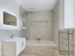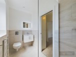 Light, airy and stylishly appointed once again, this time with a large tiled-in bath tub with alcove niche feature, rainfall shower, additional riser rail attachment and a glass partition screen. Wall mounted wash basin with cabinet below and backlit anti-fog mirror over, and a wall mounted WC with concealed cistern. Attractively tiled throughout, with extractor fan, electric towel rail and a double glazed privacy window.