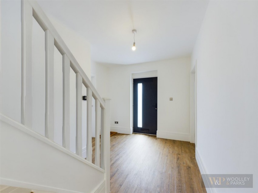 A modern composite entrance door, with an opaque double glazed light panel, opens to a welcoming hallway from which the staircase rises to the first floor. The flooring is laid in luxury vinyl tiles (LVT), in a beautiful oak finish - ideal for underfloor heating as they insulate and are designed not to lose heat and expel it slowly and efficiently.